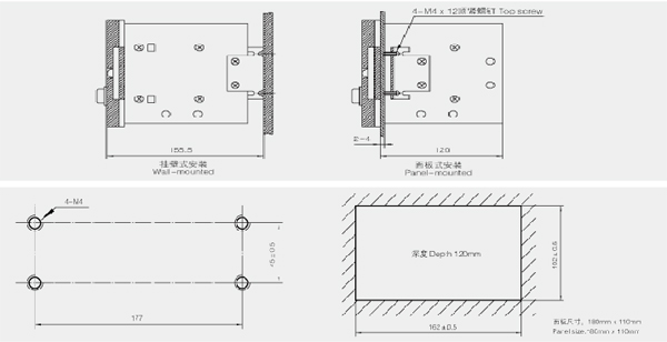 自动张力外形尺寸: SC-3H型自动张力控制仪可以落地式、挂壁式和面板式安装。