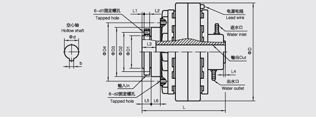 FL-K/Y type (flange input, hollow shaft support, water cooling) output and magnetic powder clutch